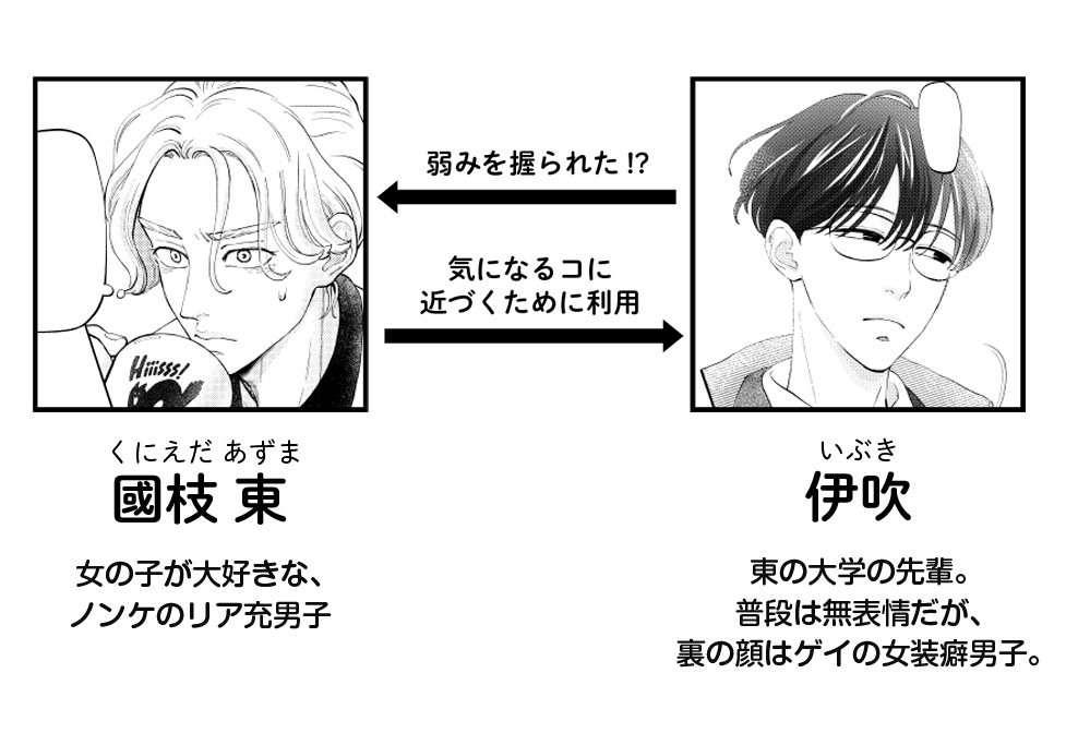 飲みに行った先でメイドさんに出会った東。よく見ると彼女は、大学で“無表情眼鏡”と敵対視していた伊吹先輩が女装した姿だった! メイド姿を撮影し弱みを握った東は、からかって「ひとりエッチを見せろ」と伊吹を脅す。しかし伊吹の乱れた姿を見るうちに、東も妙な気分になってきてしまい…?